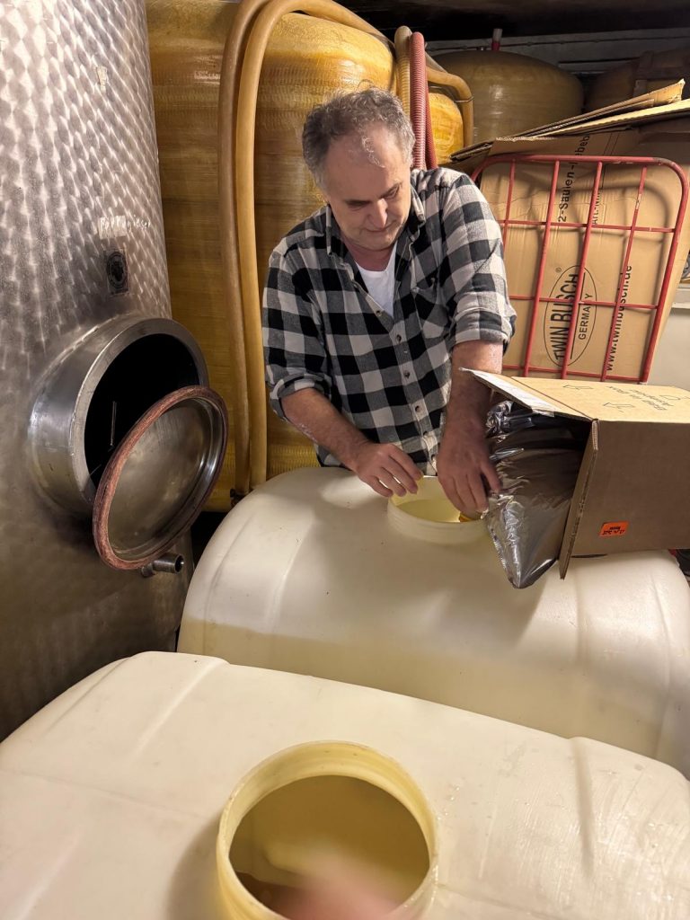 Der Winzermeister Wolfgang kreiert im Hintergrund die Variationen unseres Seccos um die Ideen von mir zu verwirklichen, was nicht die leichteste Aufgabe ist.